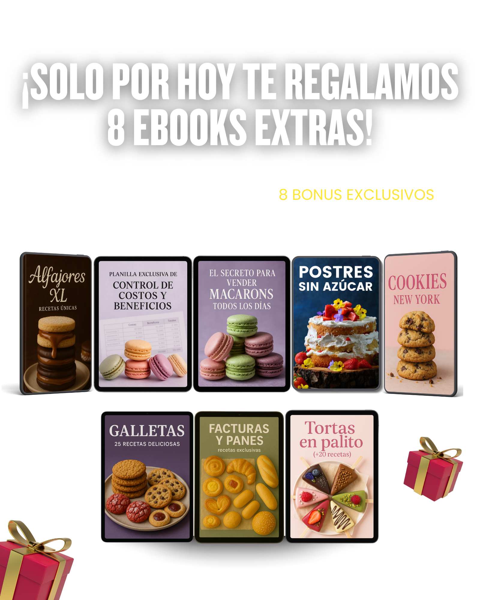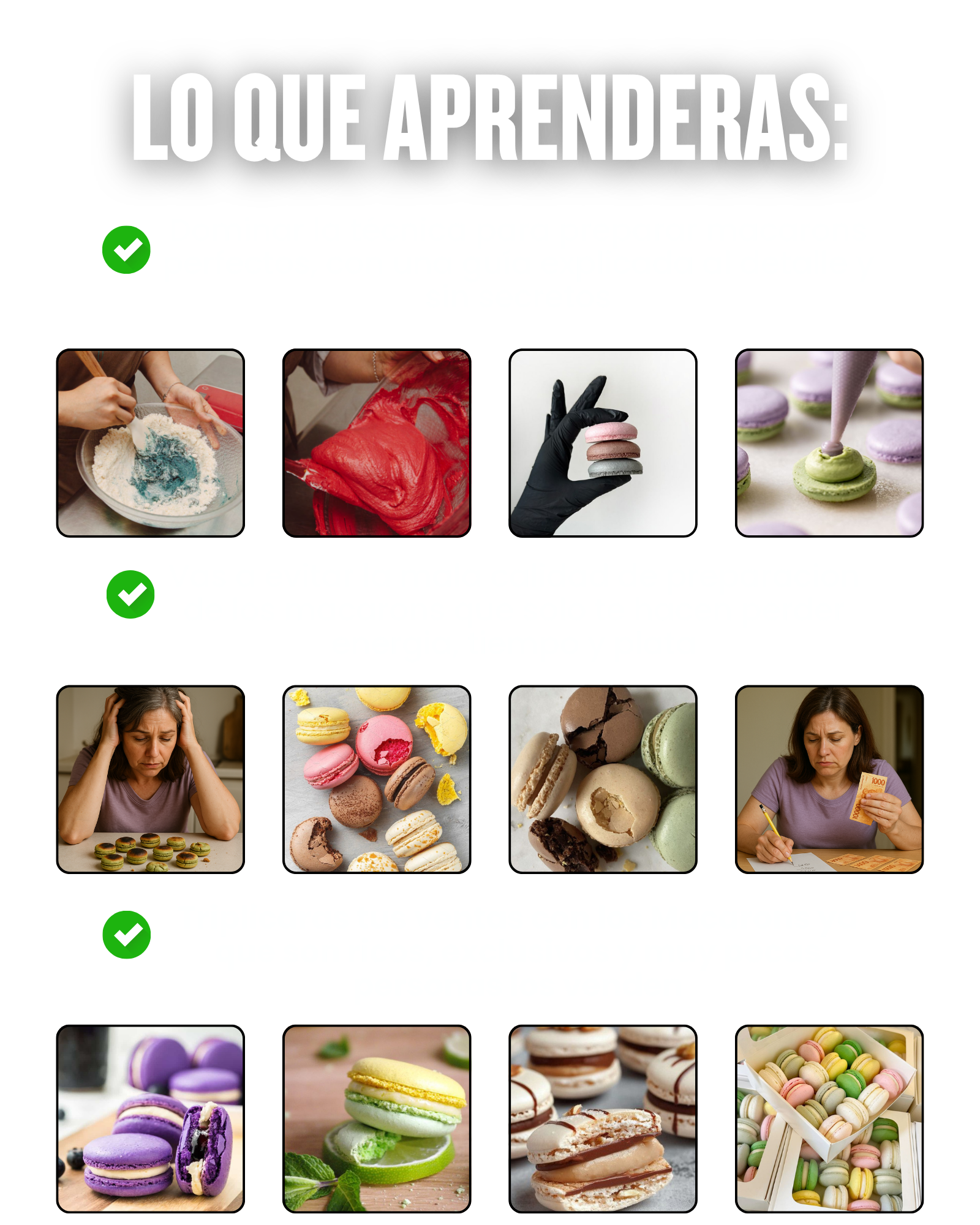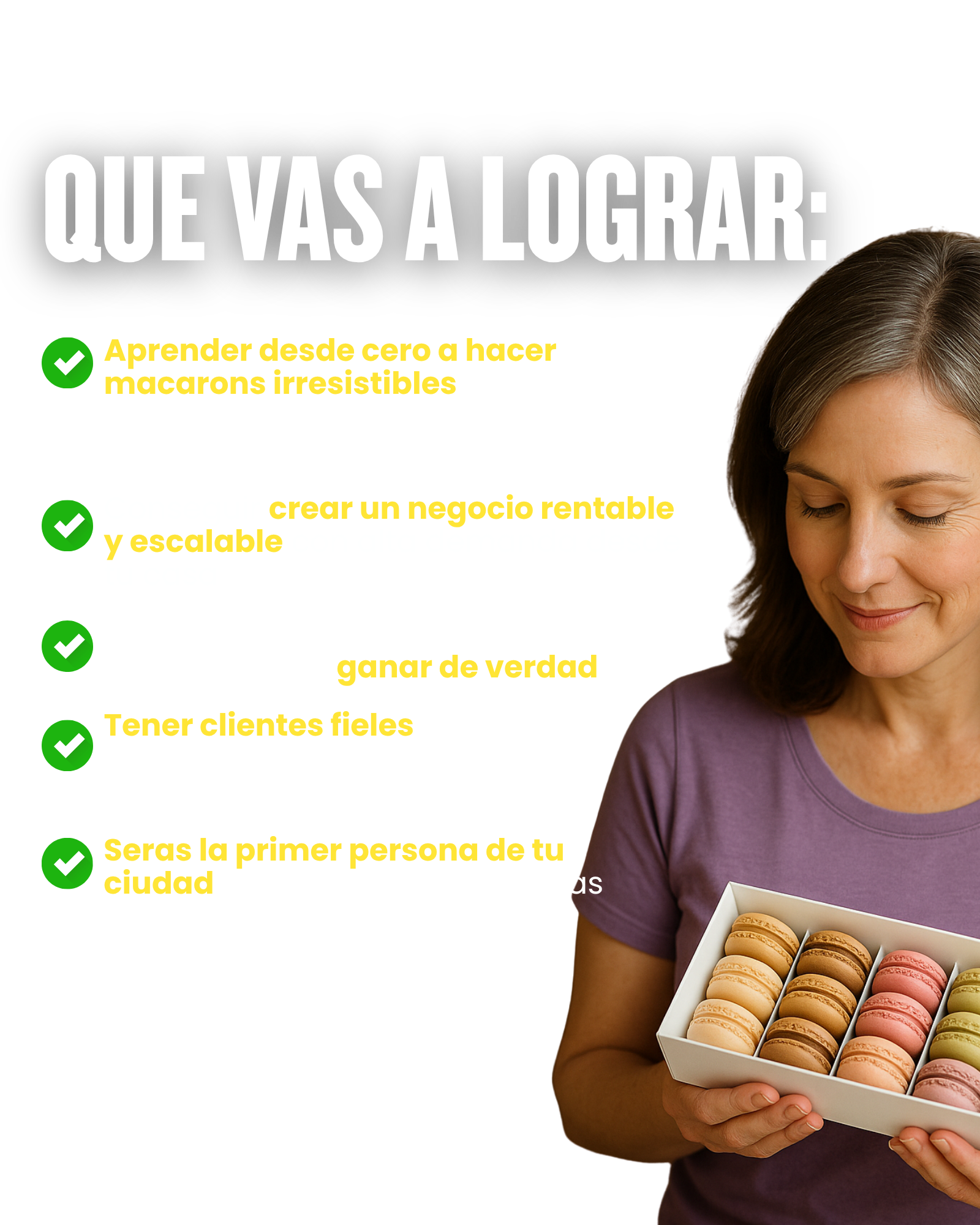 ¡Sí! El ebook trae más de 70 recetas exclusivas, con variaciones de sabores, rellenos y colores para que puedas crear macarons únicos, personalizados y listos para sorprender en cualquier ocasión.