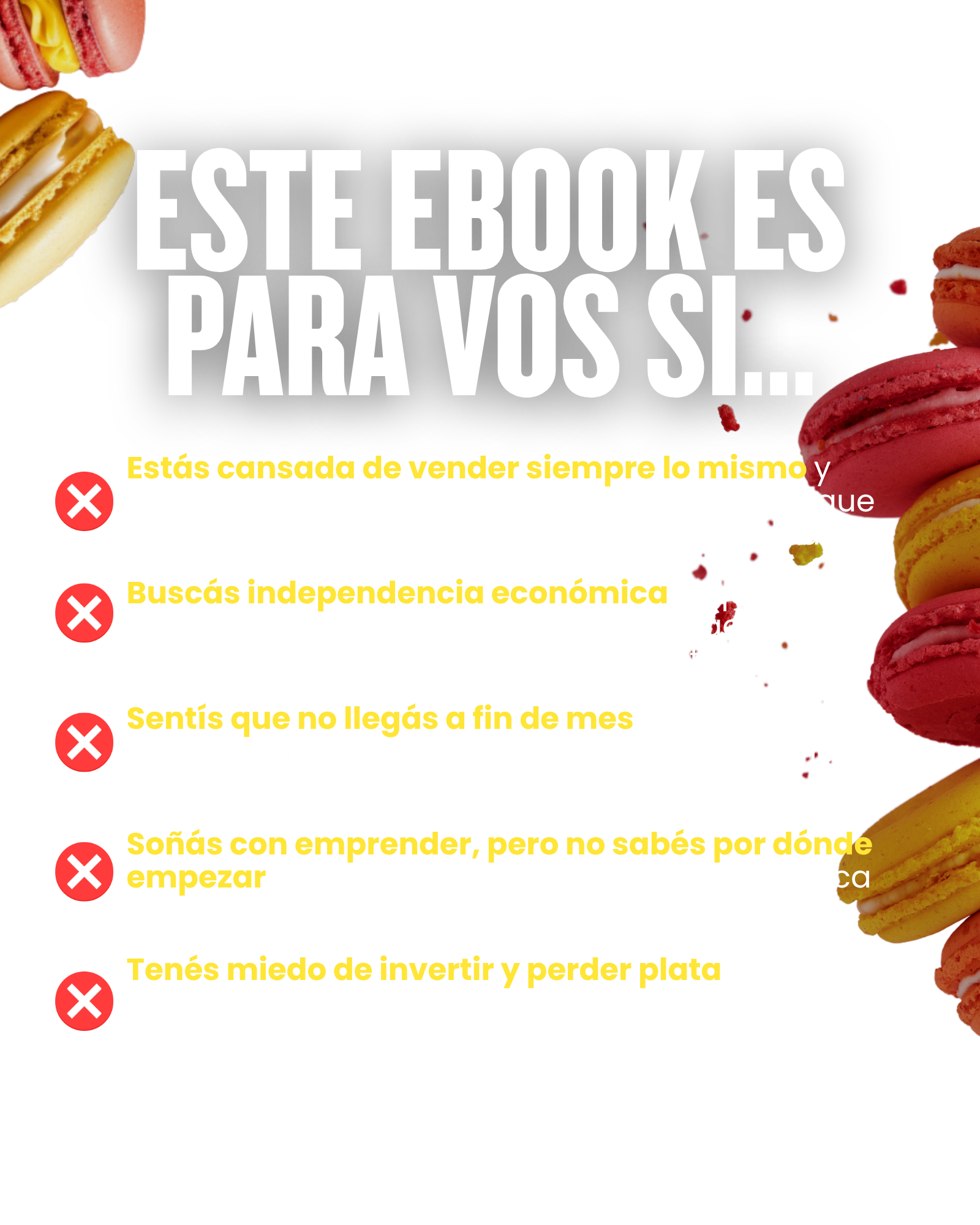Soy mamá primeriza y necesitaba trabajar desde casa 👶💗 Gracias a este ebook hoy tengo mi pequeño emprendimiento de macarons y me va súper bien ✨